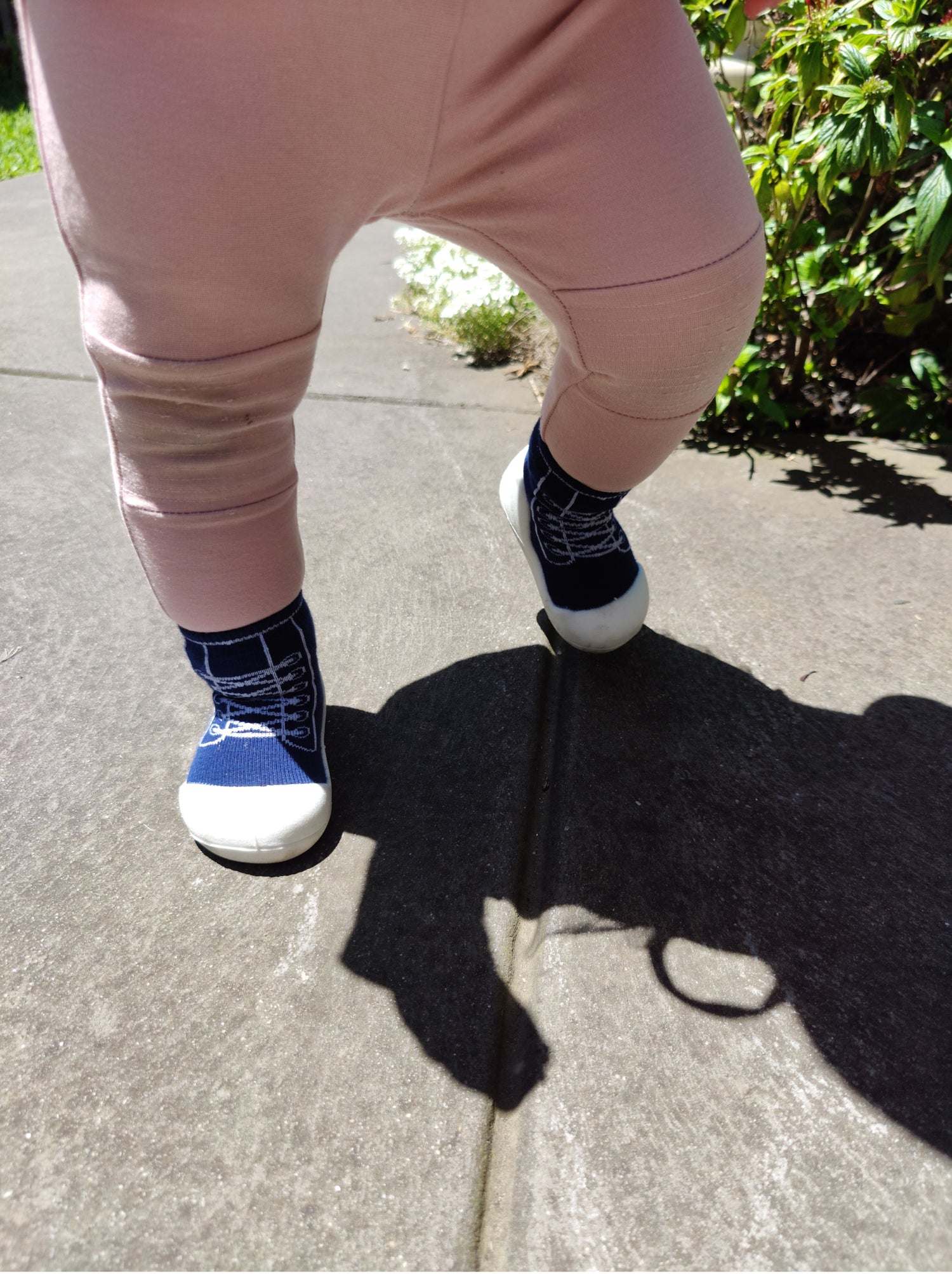 The classic high top sneaker look without the fuss of dealing with laces, simply pull on and go! Super light weight, flexible with great grip, our shoes allow toddlers to walk, run and climb feeling like they're barefoot whilst protecting them from rough surfaces. Caring for the planet by using sock thread made from 95% recycled post consumer polyester.